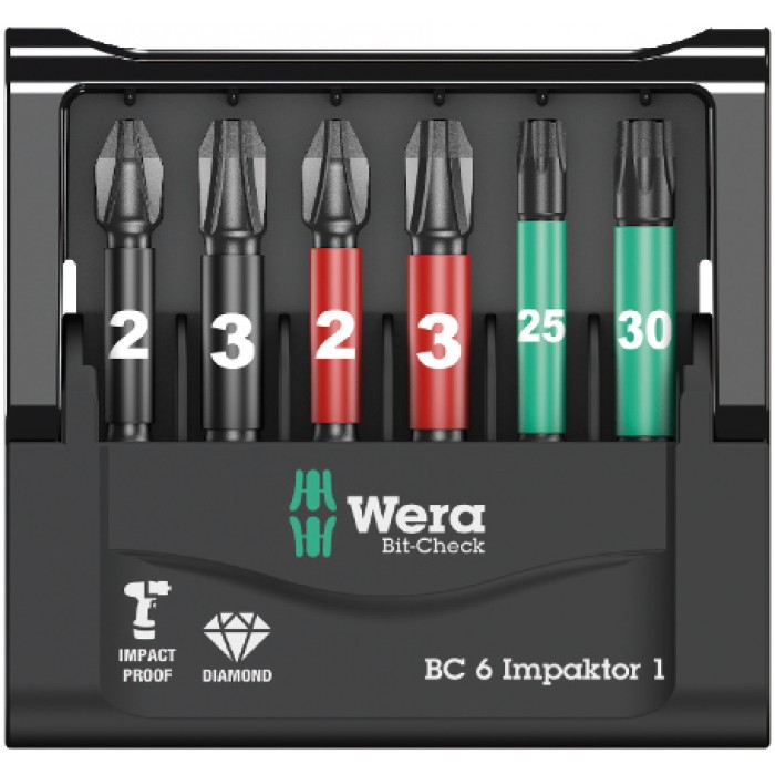 Набор бит ударных 6 Impaktor 1, алмаз, 6 пр., 1/4" E6.3 Bit-Check WE-057695