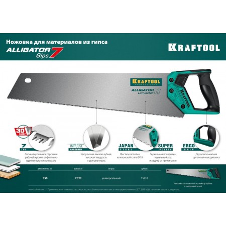 Ножовка для гипса Alligator Gips 7, 550 мм KRAFTOOL 15210
