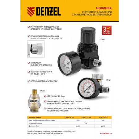 Лубрикатор ML2, 10 бар, 1/4" Denzel (57003)