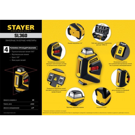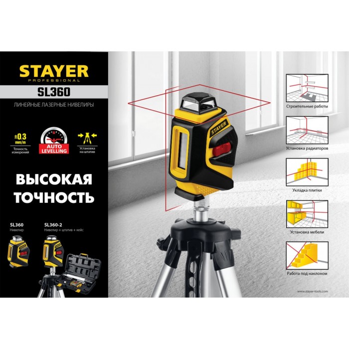 - Функция самовыравнивания устраняет необходимость настройки, гарантирует максимальную точность при разметке.