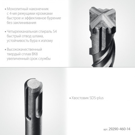 Бур SDS-plus HERCULES-4Х 14x460 мм STAYER 29290-460-14