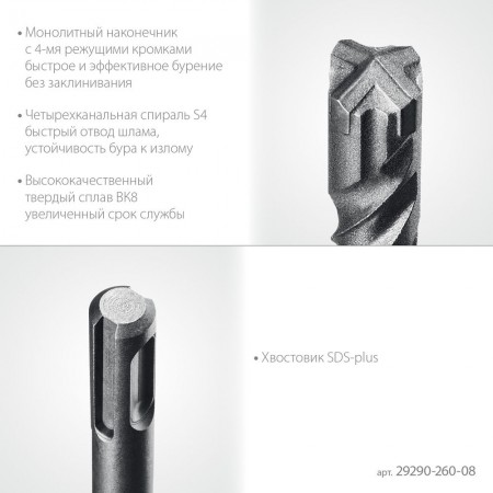 Бур SDS-plus HERCULES-4Х STAYER 8x260 мм 29290-260-08