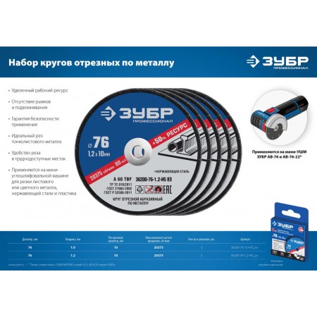 Отрезной круг Х-2 76 x 1.2 мм, для УШМ ЗУБР 36200-76-1.2-H5_z03
