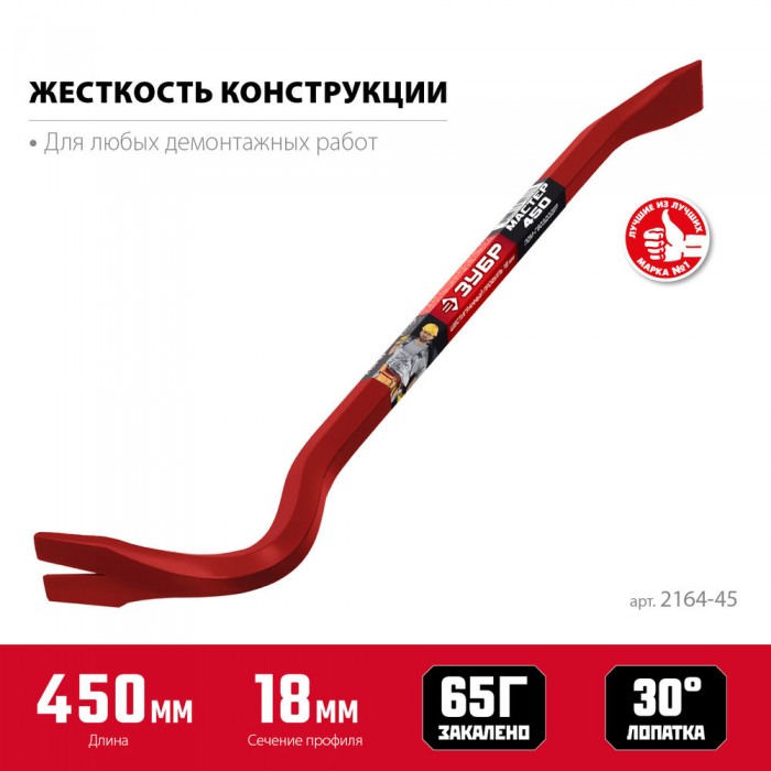 Профессиональный инструмент для демонтажных работ «ЗУБР» выдерживает длительные высокие нагрузки, обладает высоким ресурсом, имеет длительный срок службы и обеспечивает качественную работу.