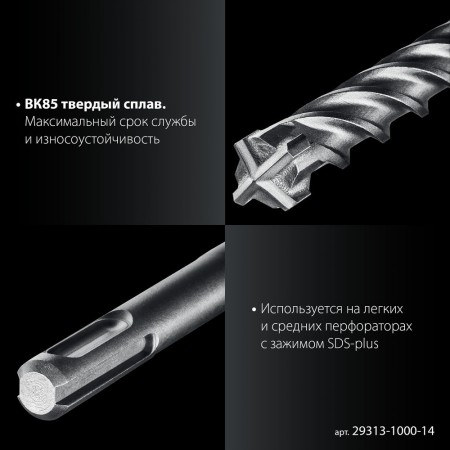 Бур SDS-plus 14 х 1000 мм ПРОФИ-4Х ЗУБР 29313-1000-14